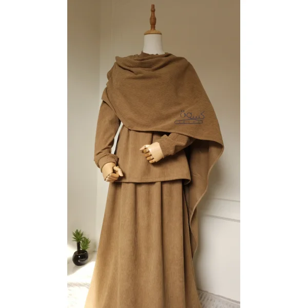 سوت ٨ * ١ وممكن كمان تطلعي افكار تانية كتير وتغيري في طريقة اللبس براحتك ، السوت عبارة عن اربع قطع منفصلة الجيب + البلاوز + الشال + الحزام